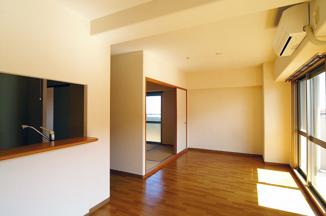 3LDK-BタイプのLDKと和室。キッチンは対面型。 部屋No.102 203 303 403 503 603