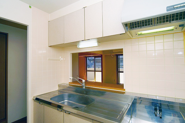 3LDK-Cタイプのキッチン。 バス・洗面・洗濯など、水回りの動線がgoodと評判。