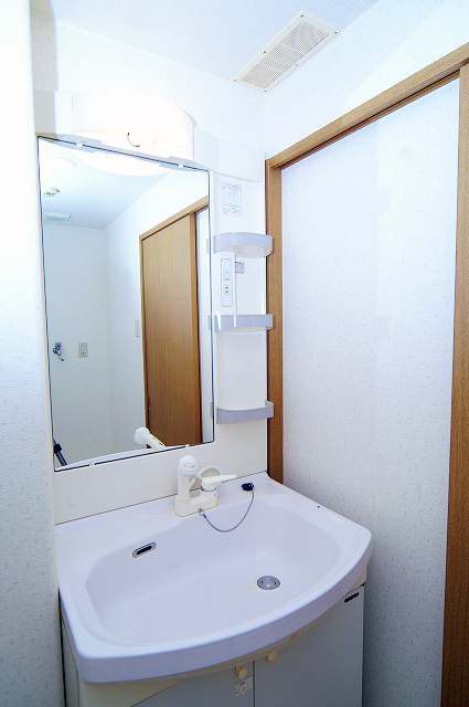 洗面化粧台です。こまごまと、収納にこだわりました。